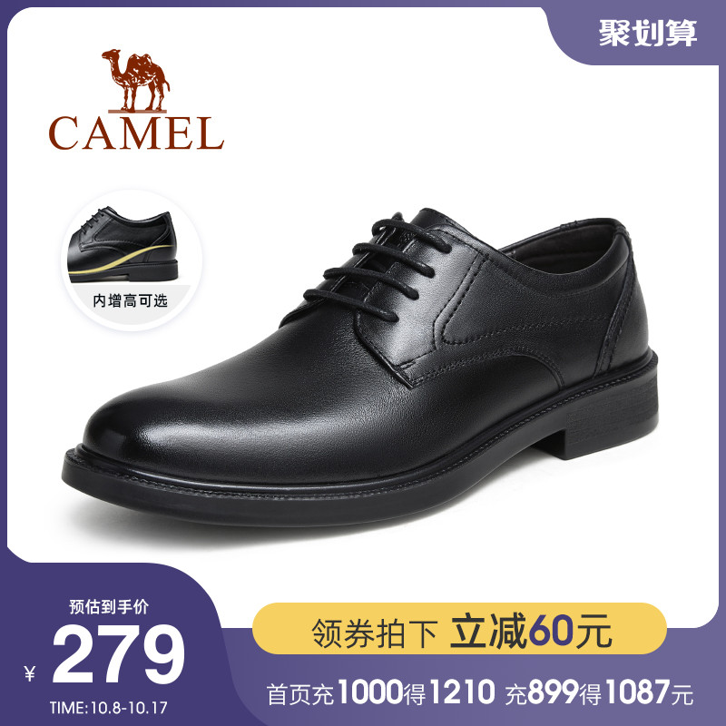 骆驼正装皮鞋男真皮软底男鞋年春季休闲商务男士内增高德比鞋
