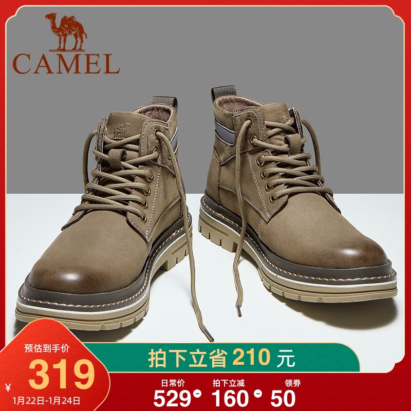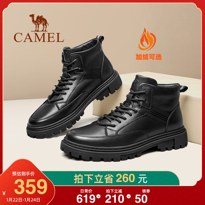 骆驼男鞋加绒秋冬真皮马丁靴男高帮休闲皮靴英伦潮流工装靴子