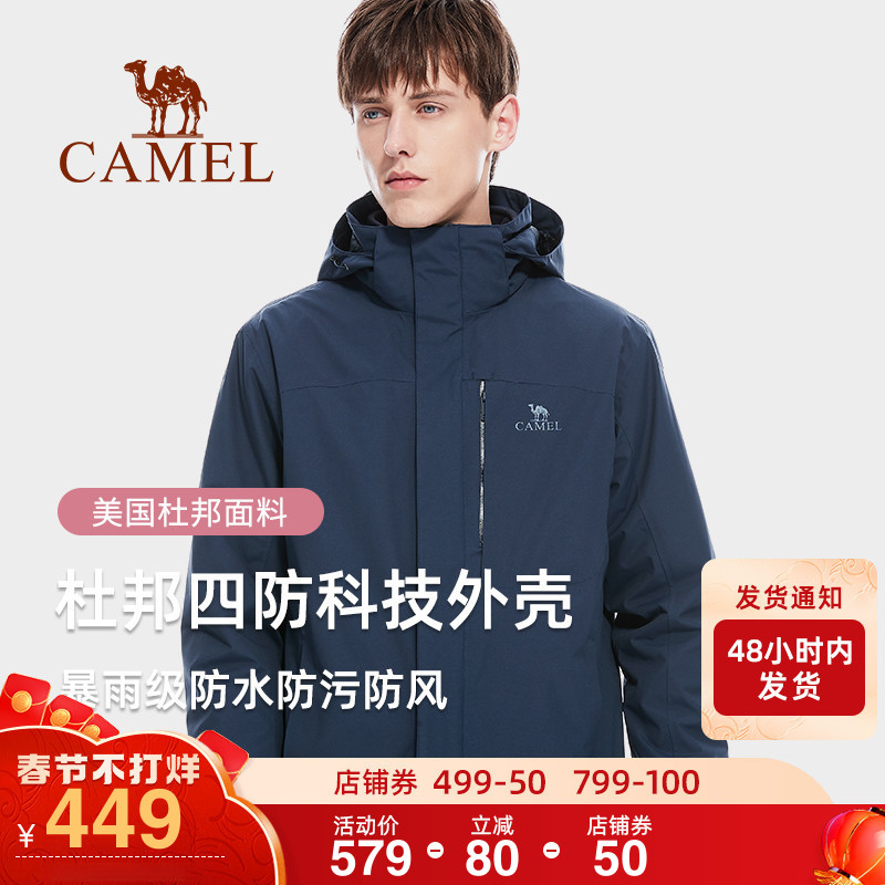 骆驼户外秋冬新款冲锋衣男三合一可拆卸防风防水两件套登山服