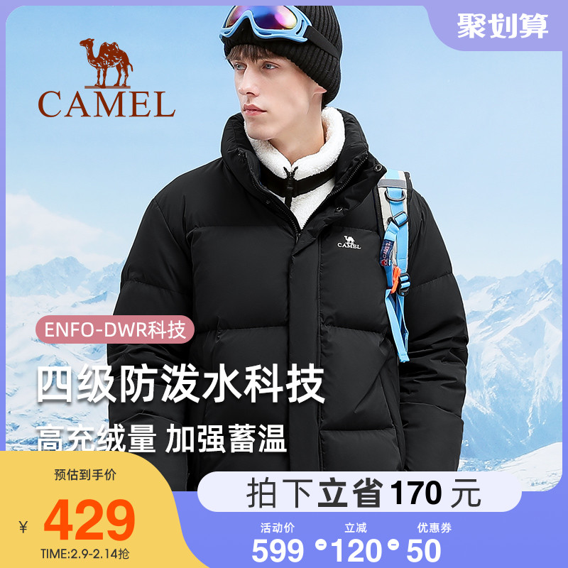 骆驼男装秋冬季外套年新款潮牌加厚白鸭绒爸爸羽绒服男中长款