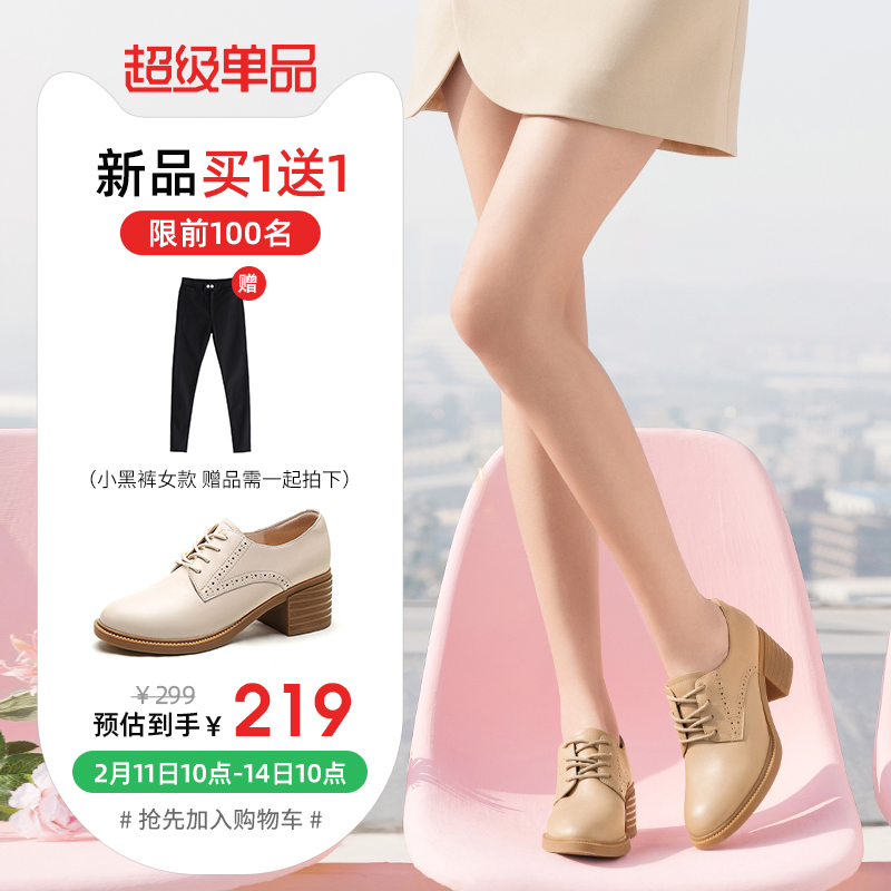 骆驼女鞋2022春秋新款真皮百搭圆头通勤高跟鞋粗跟小皮鞋深口单鞋