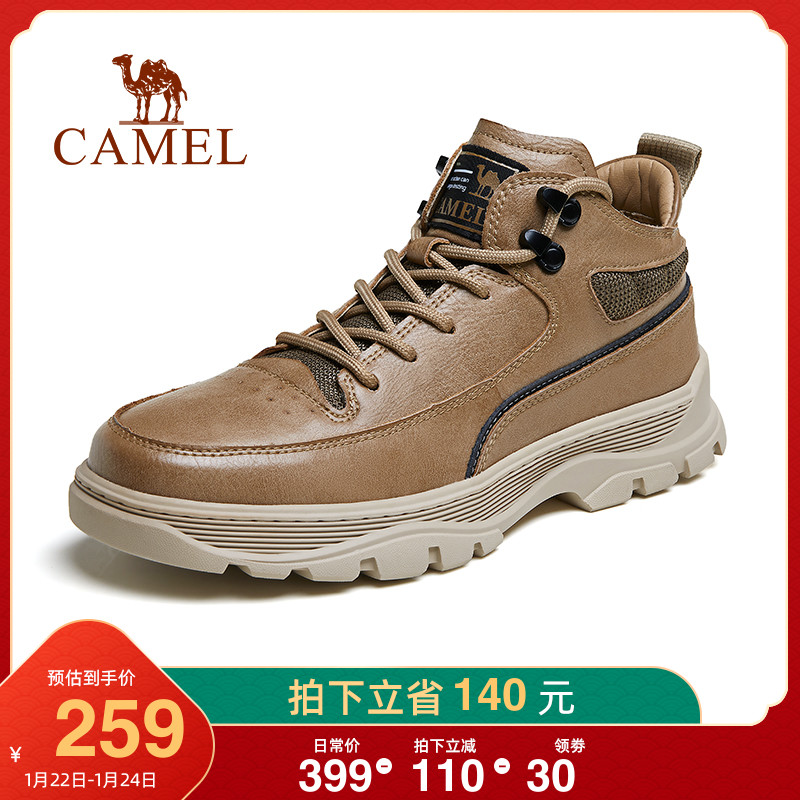 骆驼男鞋冬季新品高帮真皮加绒棉鞋男休闲牛皮商务靴男士皮鞋