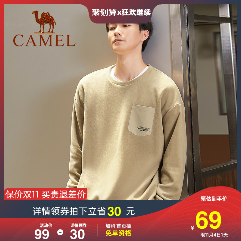 骆驼男装秋冬季潮宽松套头圆领抓绒衣保暖摇粒绒加绒卫衣