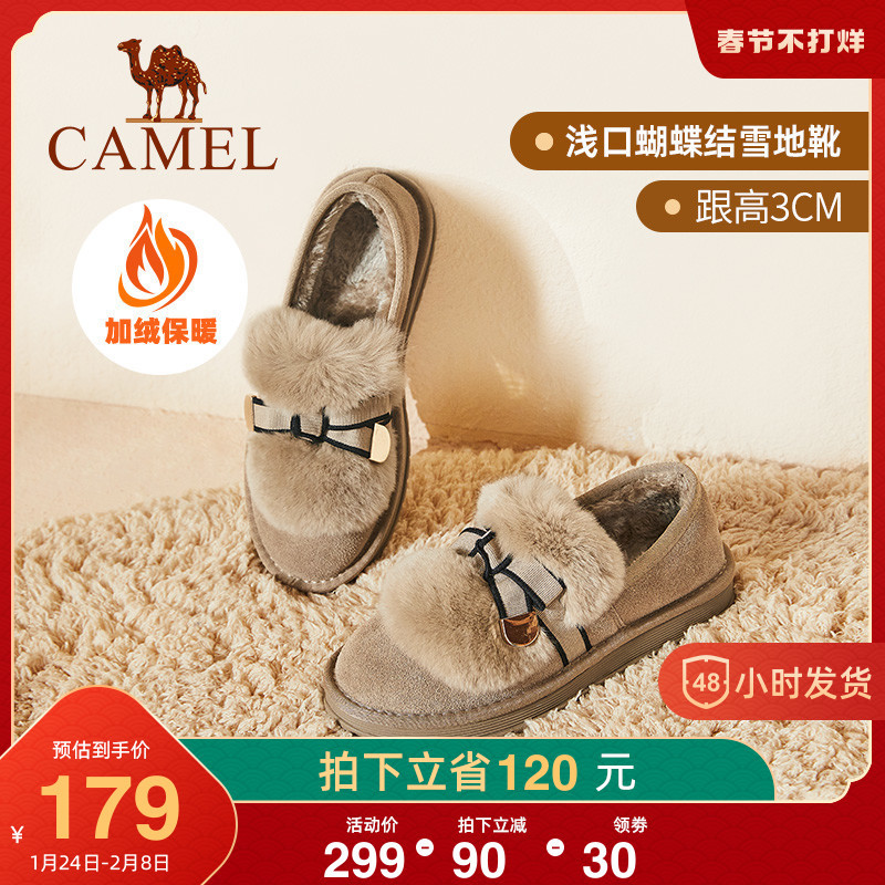 骆驼女鞋冬季新款保暖棉鞋雪地靴圆头短靴加绒毛毛鞋乐福鞋女