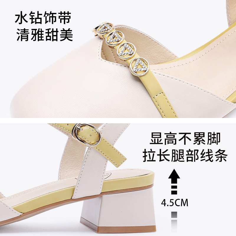 • 骆驼服饰旗舰店骆驼夏季新款凉鞋女一字扣带百搭中粗跟包方头复古仙女风单鞋23/4