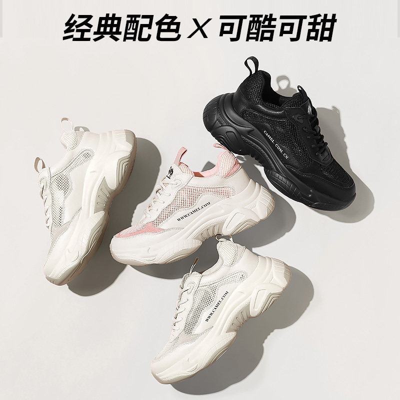 骆驼服饰旗舰店骆驼女鞋夏季厚底网洞老爹鞋网红运动百搭ins网红超火小白鞋