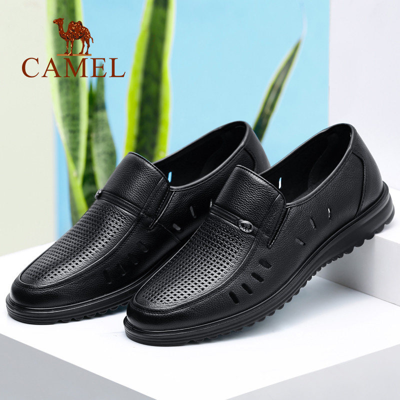 • 骆驼服饰旗舰店骆驼真皮男鞋网面透气孔鞋夏季乐福鞋套脚商务皮鞋中年爸爸鞋12/4