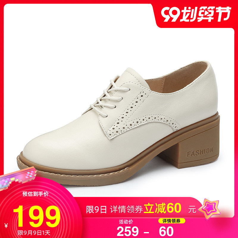 骆驼服饰旗舰店骆驼秋季新款英伦布洛克温柔风小皮鞋系带淑女风粗跟深口单鞋