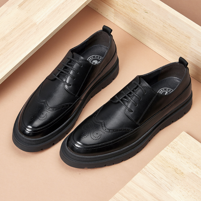 • 骆驼服饰旗舰店骆驼英伦时尚真皮男鞋秋季厚底增高布洛克雕花皮鞋商务休闲鞋12/4