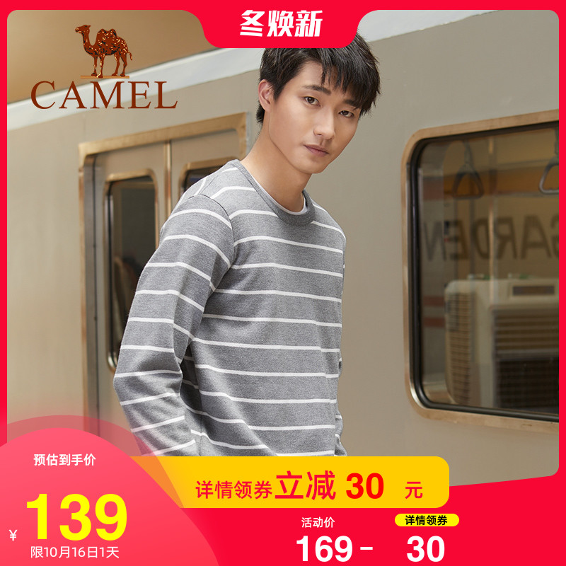 骆驼服饰旗舰店骆驼男装加绒加厚毛衣男秋冬季新款韩版潮流针织衫打底衫上衣合身舒适 简约百搭 加绒保暖