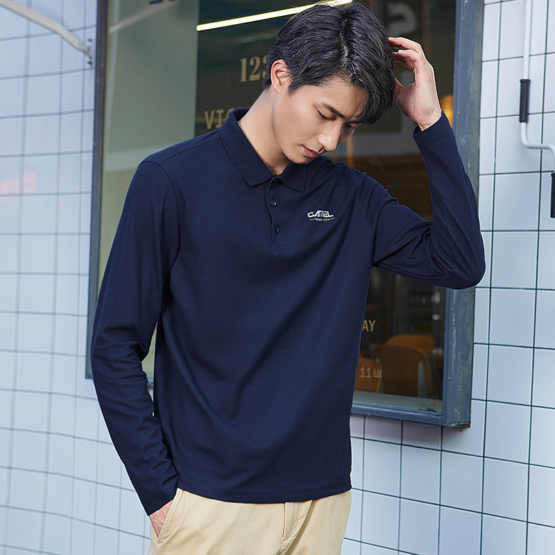 • 骆驼服饰旗舰店骆驼男装秋季新款翻领上衣商务休闲简约纯色polo衫男长袖t恤34/4