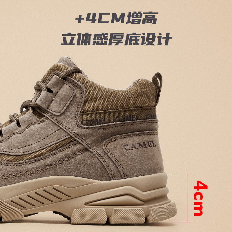 骆驼服饰旗舰店骆驼男鞋加绒新款男士马丁靴秋冬款复古高帮户外休闲工装靴子百搭工装 绒面皮革 加厚软绵鞋口