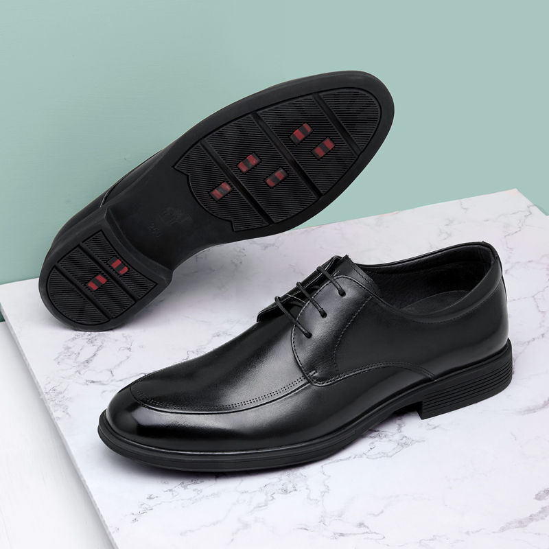 • 骆驼服饰旗舰店骆驼皮鞋男真皮尖头增高黑色正装小亮皮英伦风正装商务正品德比鞋23/4