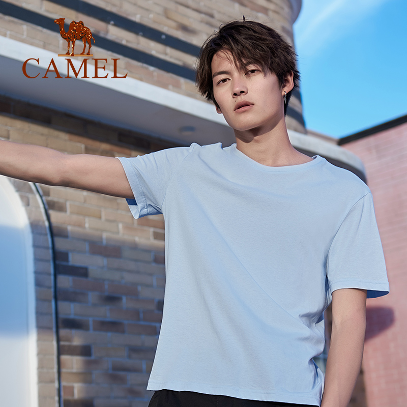 骆驼服饰旗舰店骆驼男装新款春夏圆领T恤纯棉短袖男女同款时尚半袖百搭上衣纯棉面料 亲肤舒适 柔软微弹